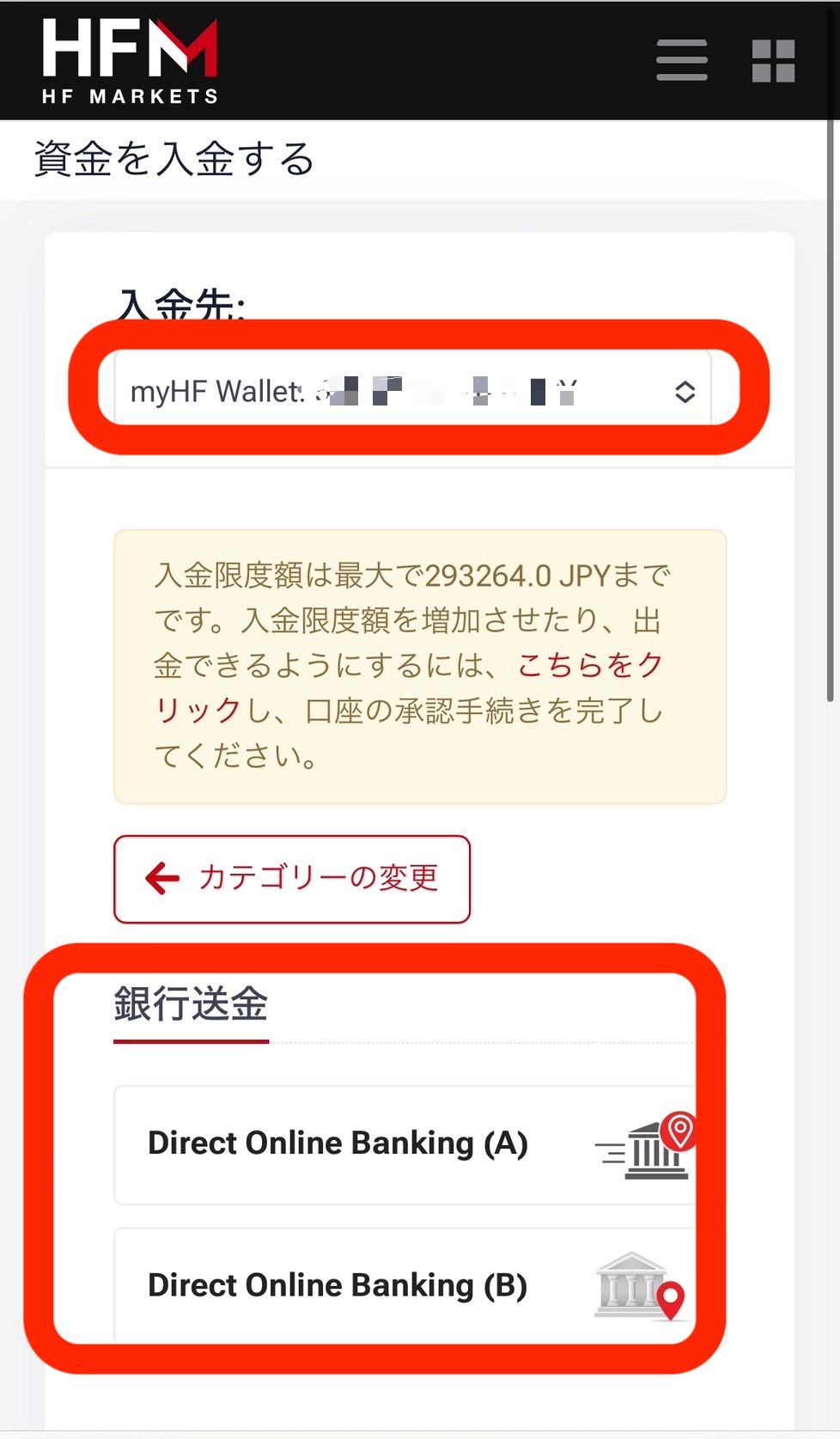 入金方法一覧の中から、銀行送金(Direct Online Banking)を選択してください。
