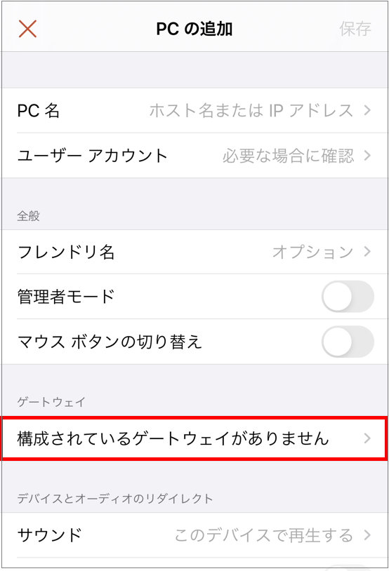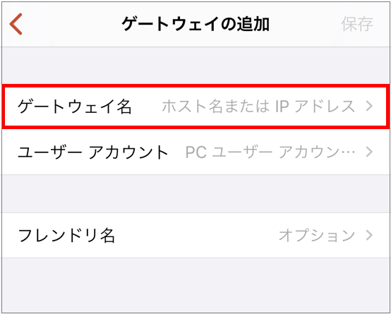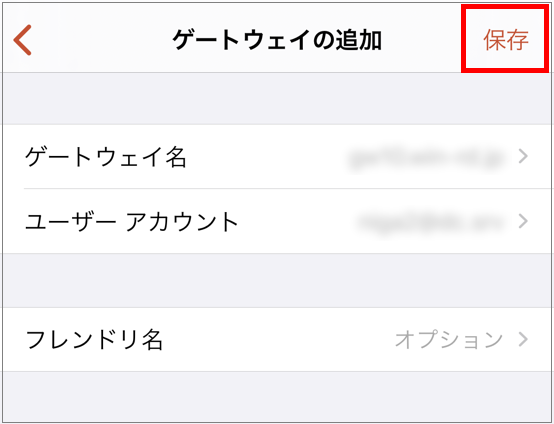 画面左上の「<」をタップし、「ゲートウェイの追加」画面に戻り、右上の「保存」をタップします。