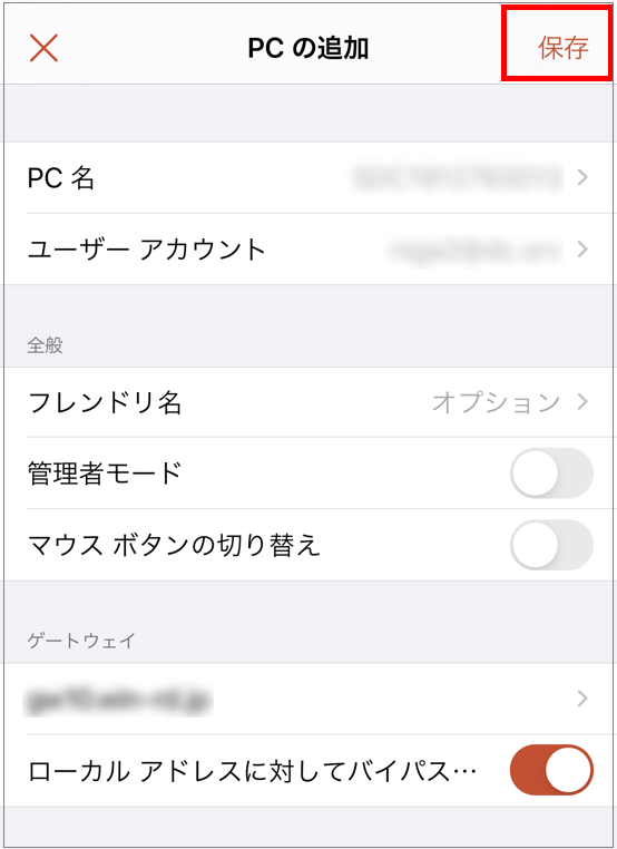 「PCの追加」画面に戻ったら、右上「保存」をタップします。
