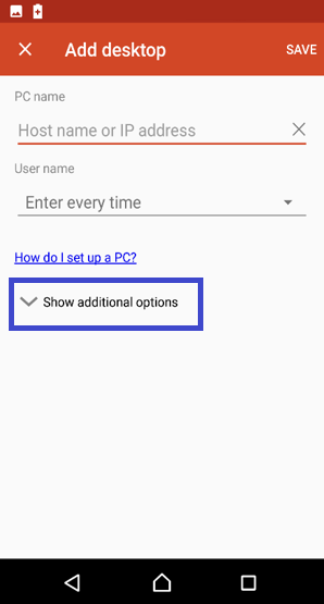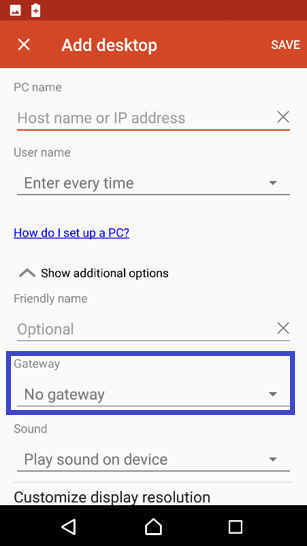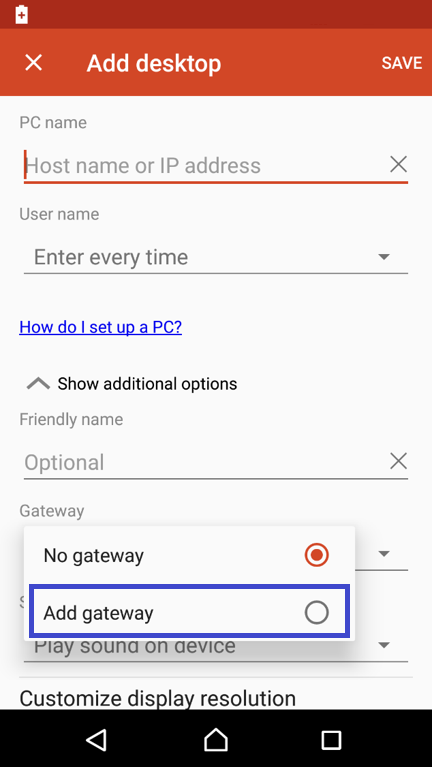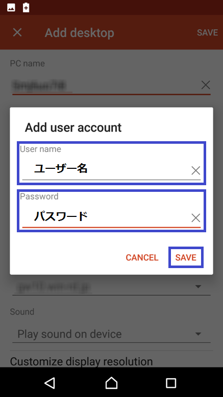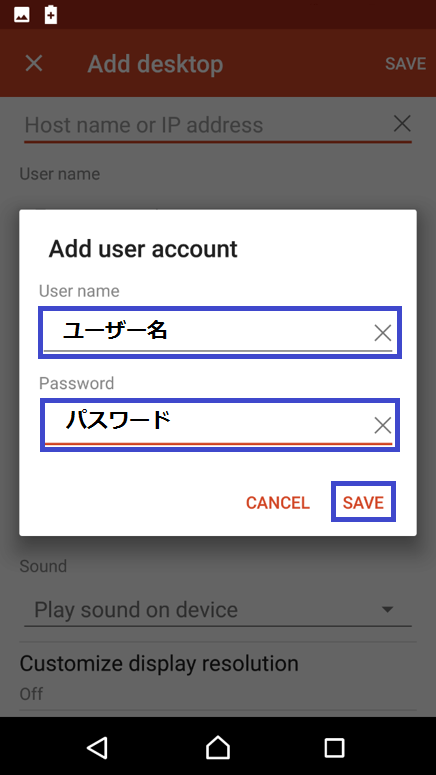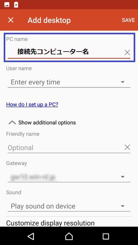 入力が完了したら右下「SAVE」をタップし「Add desktop」画面に戻ります。